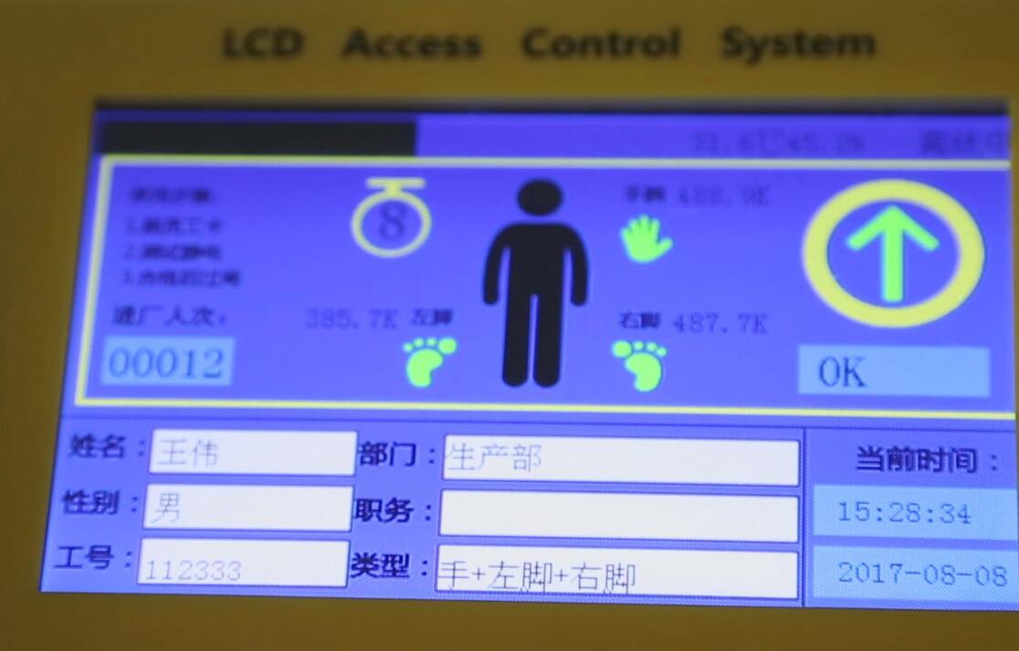 2.根据LCD屏提示项目核实并检测,成功后则显示“测试成功 请进入”闸机开门并有通行指示灯提示,进入车间。测试失败则显示 “测试失败 禁止通行”闸机不开门。