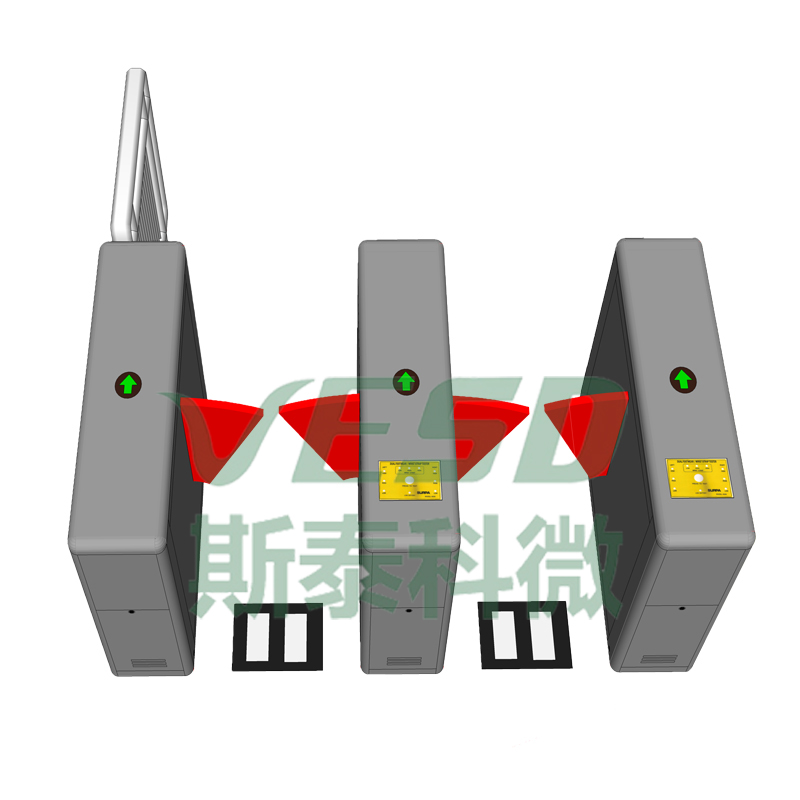 翼闸机 | 设备外形采用不锈钢板冲压成型,造型美观大方,并且对外采用标准电气接 口,能方便的将 ID 卡、IC 卡等读卡器集成在本设备上,为出入人员提供文明、 有序的通行方式,同时又将杜绝非法人员出入;另外系统还专门设计了满足消防 要求的功能,在出现紧急情况时,自动收闸,保证通道畅通无阻,方便人员及时 疏散。 | A.翼闸机箱尺寸:长1200*宽300*高990mm。(可定做) B.通道宽度:550mm。(除机箱外) C.指示灯:通行禁止灯、通道指示灯。 D.机箱材质:304不锈钢。 E.翼臂材质:透明、红色、蓝色亚克力+LED灯光/柔性阻燃聚氨酯泡沫塑料(红色)可选。 F.通行速度:30人/分。 G.工作环境:-30℃~+60℃ H.开门时间:1-60S可调。通行结束自动复位。可开启关门延时功能(1-20秒)。 I.尾随方式:红外线感应。 J.防夹方式:红外线及机芯双重防护。 K.使用寿命:500万次以上